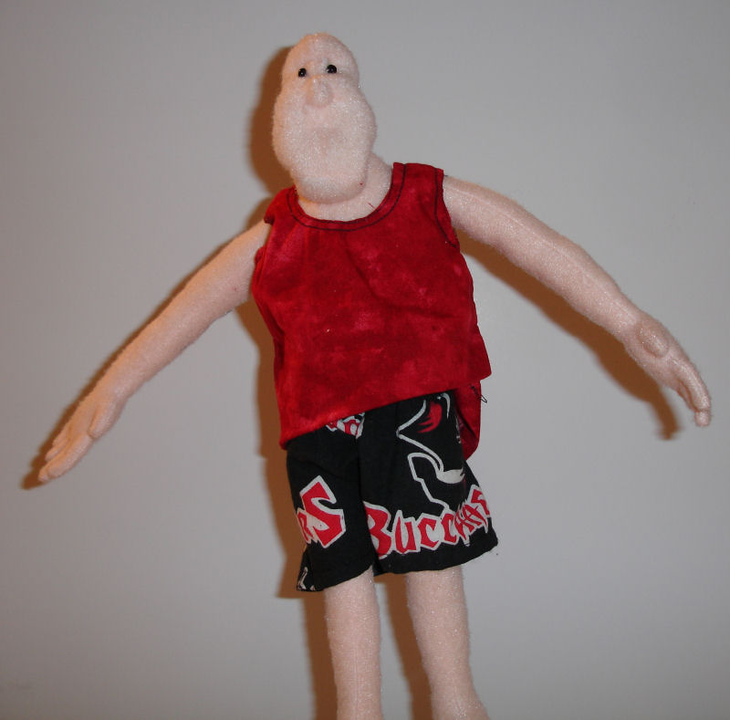 Tampa being a steamy hot climate I thought this was a perfect representation. I would like to make flip flops for him and maybe get a miniature beer can to finish him off!