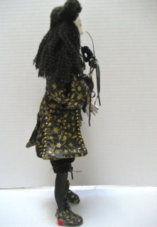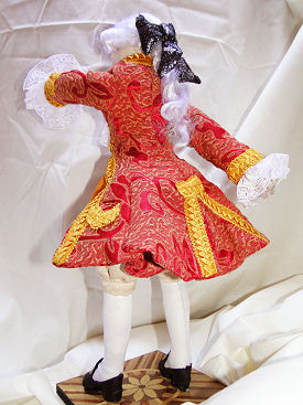 My doll's name is Francis. He is from the 1670s, the Era of Louis XIV and is supposed to represent a courtier from the French Court going to a masquerade at Versailles.