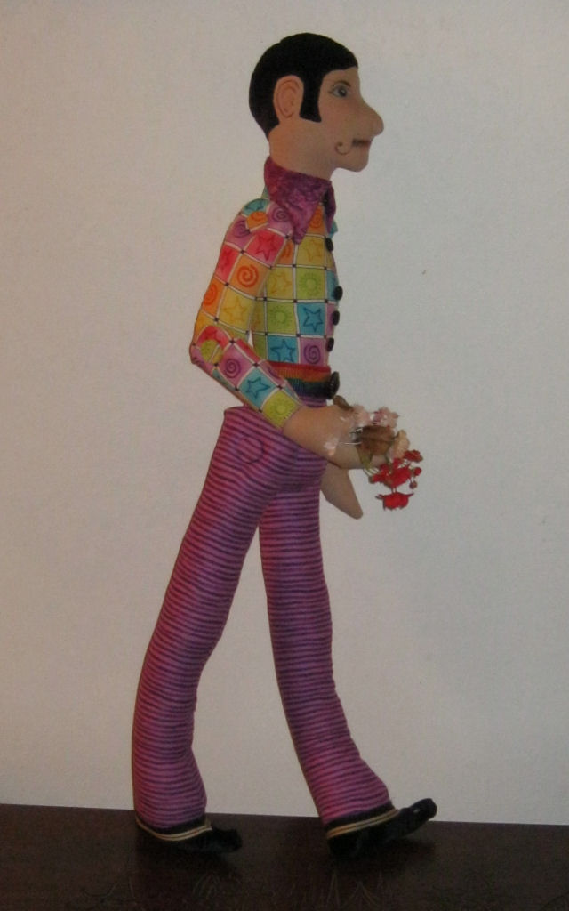 I used a pattern by Mimi Winer called "Stretch" for the body and clothing and then tweaked it to lengthen the pants and changed the shirt and vest to more of a hippie style. My doll is named "Taylor Shaughnessy" which is a nod to friends I had in that decade and why I chose the 60's for my doll.