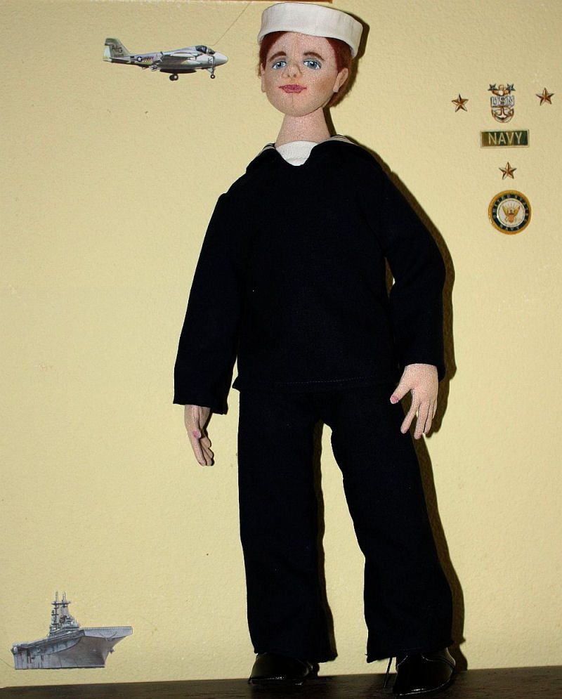 Ned of the Navy's body is made (and tweaked a bit) from the pattern "Dude for All Seasons" by Mary Ann Kaahanui and Bonnie B. Lewis.