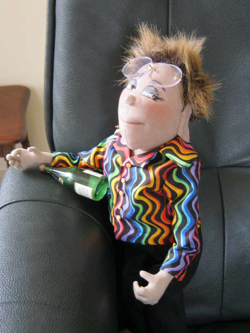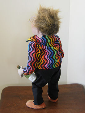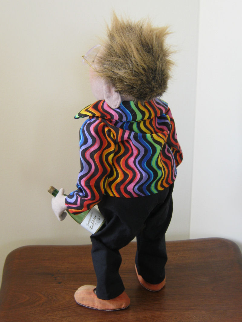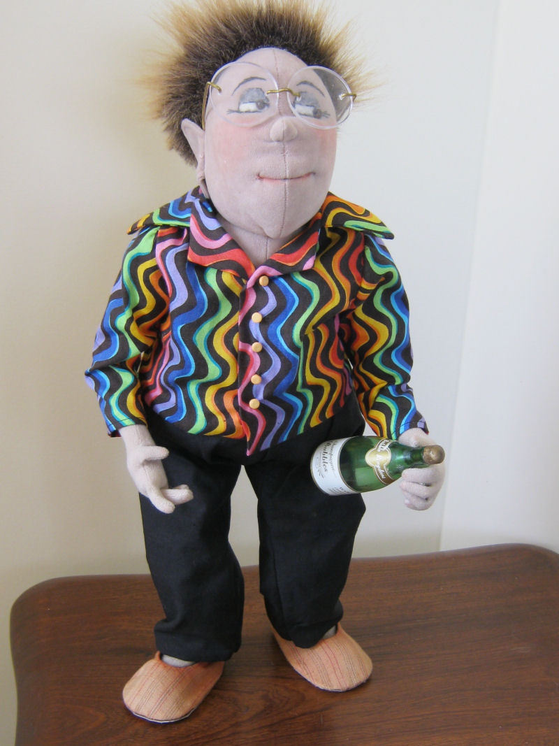 Desingner name Mary Tressler pattern Basic Male. I tweaked it around middle to give it larger belly. I made the clothe myself. No pattern for clothes.He stand on his own.
